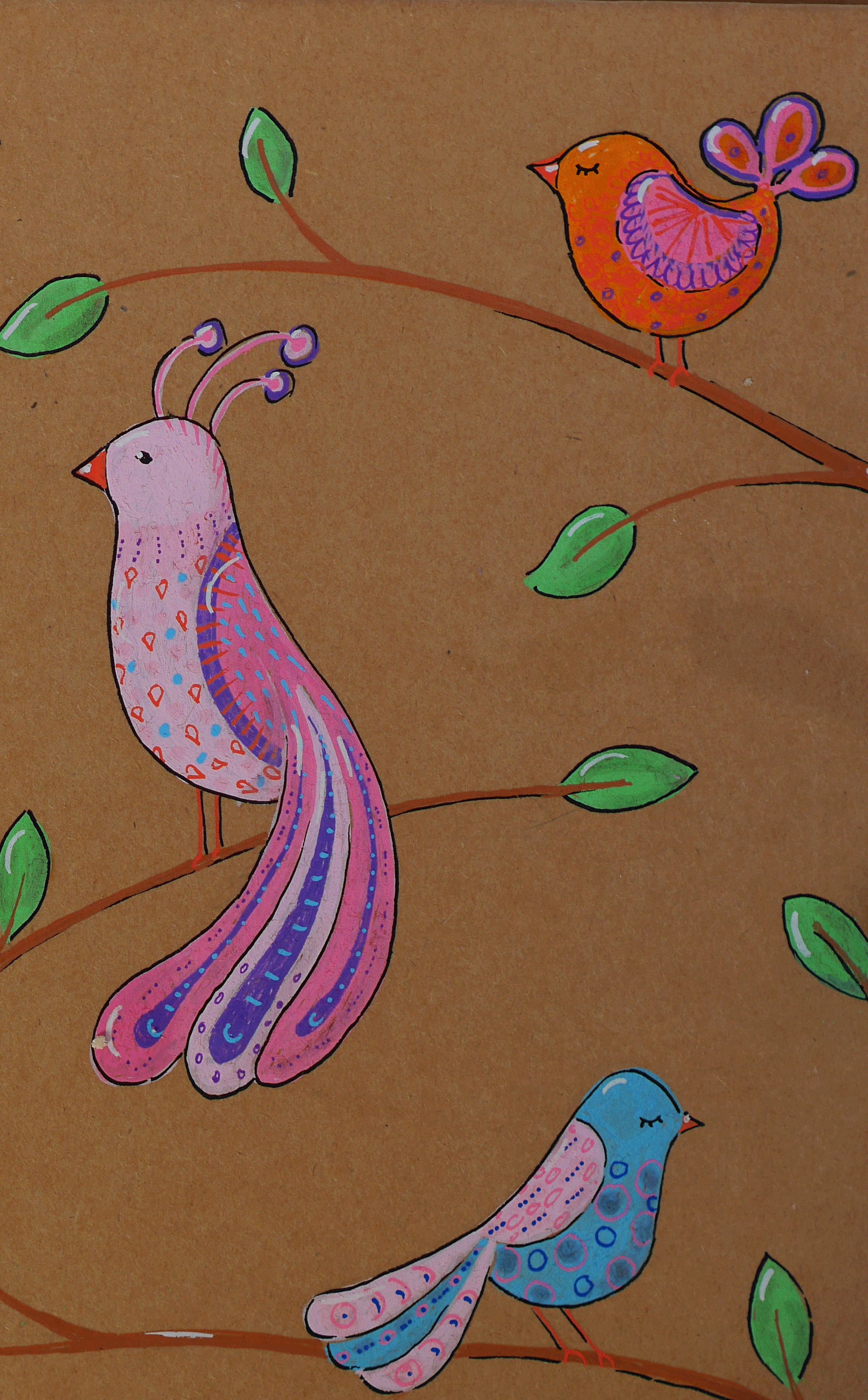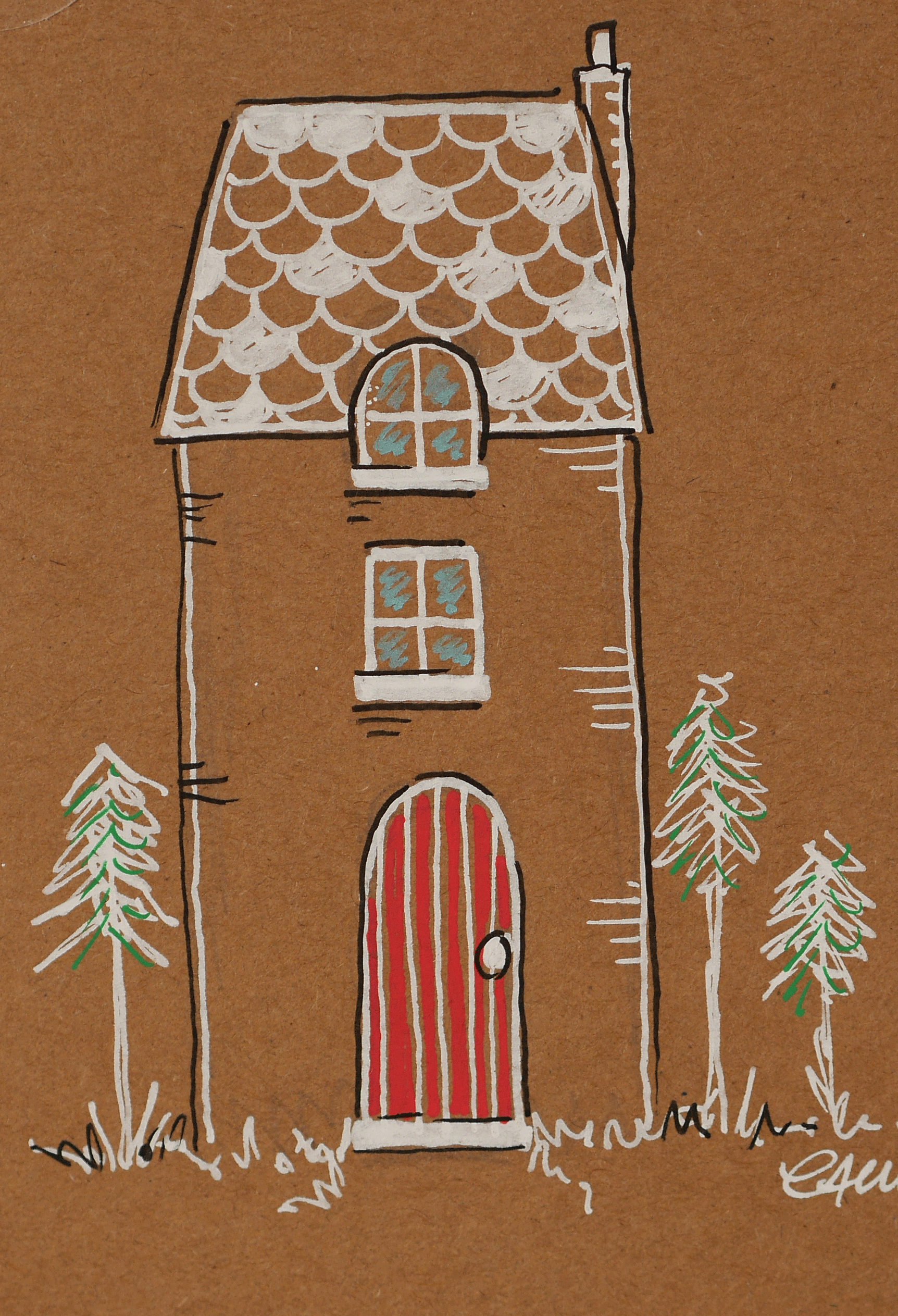 Each card is drawn by hand using pencil, water-based paint markers, and ink, on recycled card.